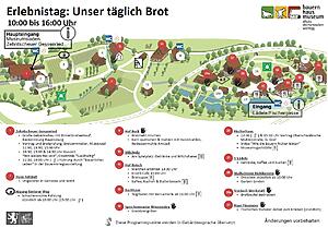 Ob Dreschen oder Garben binden – es gibt viel zu tun und jede Menge Spaß für Groß und Klein. Wer ein kreatives Andenken mit nach Hause nehmen möchte, kann einen Brotbeutel bedrucken oder eine Brotmischung herstellen. Außerdem gibt es allerlei Wissenswertes rund um alte Tischsitten und Tischgebete. Wer eine Pause braucht, kann um 13.30 Uhr den Geschichten der Märchentante lauschen, sich um 15 Uhr im Erzählcafé mit Seniorinnen und Senioren über alte Brotrezepte und die Geschichte des Bäckerhandwerks in der Region austauschen oder sich an der Feuerstelle ein leckeres Stockbrot grillen.